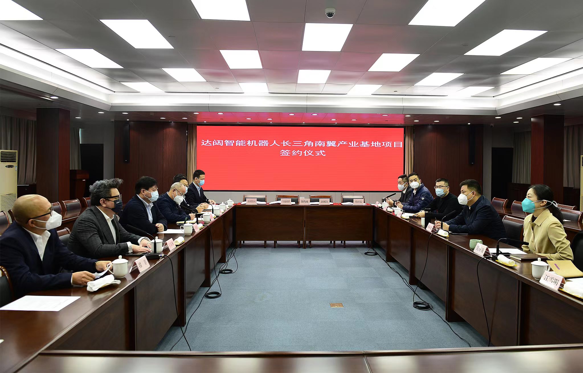 2022年12月21日上午,达闼机器人在奉化区落地建设长三角南翼智能机器人产业基地项目暨宁波通商基金有限公司联合奉化区国资平台共同投资达闼机器人项目正式签约。奉化经济开发区管委会主任汪一恒、通商基金总经理苏伟军、甬山投资董事长赵新丰、达闼机器人执行董事兼首席财务官庄家栋作为各方代表签约。