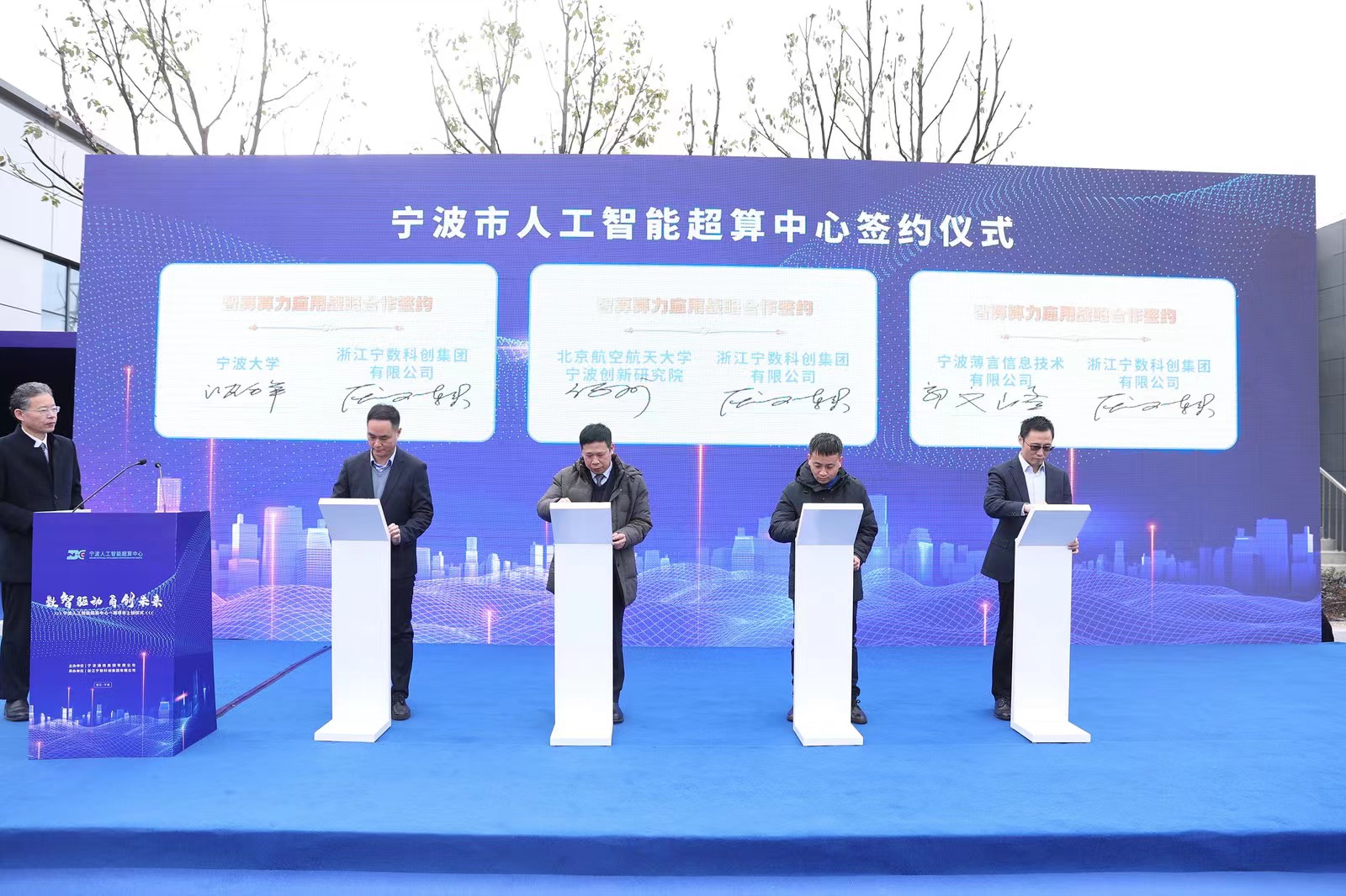 宁波人工智能超算中心是宁波市“十四五”期间重点规划建设的新型数字基础设施,也是我市年度重大项目之一。该项目由宁波通商集团投资建设,旗下首个国有数字产业平台——浙江宁数科创集团负责具体落地和运营。项目以支撑经济社会转型、产业智能升级、科教融合创新为导向,以5G、工业互联、云计算、人工智能等应用需求为牵引,围绕应用、研发和产业培育三个环节,服务产业大脑、工业智能、各科研机构高通量计算、社会治理、智能应用等场景,在人机物智能协同、新一代人工智能应用、产业生态培育等方面形成示范效应,将全面赋能宁波数字经济、智能产业、数字社会、数字政府等行业发展。