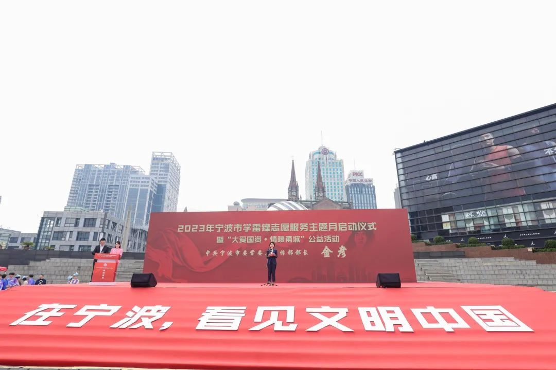 在学雷锋60周年到来之际,3月1日上午,由市委宣传部、市文明办、市国资委等单位主办的2023年宁波市学雷锋志愿服务主题月启动仪式暨“大爱国资·情暖甬城”公益集市活动,在天一广场圆满举行,市委常委、宣传部部长金彦出席并讲话。